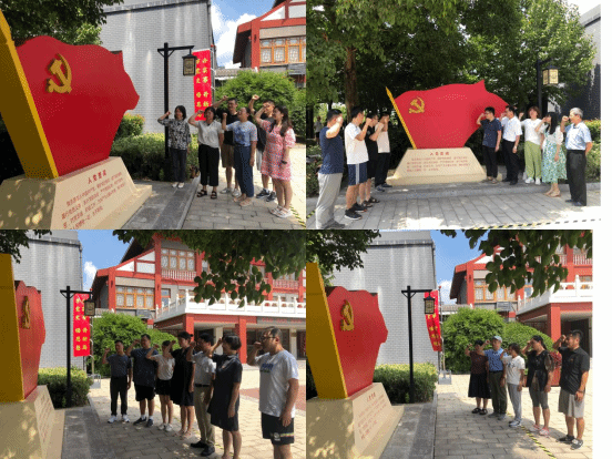 走出展览大厅后,在各教工支部书记的带领下,大家面对鲜红的党旗,高擎右拳,神情庄重,郑重宣誓,重温入党誓词。铿锵有力的誓言表达了全体党员对党的无限忠诚和热爱以及为共产主义事业奋斗终身的坚定决心。