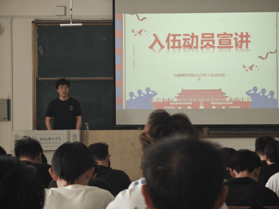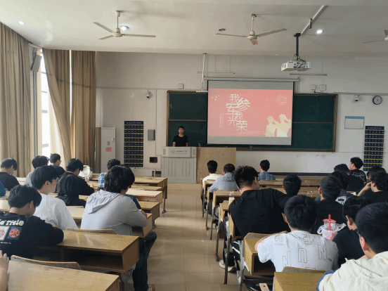 为激发青年学子参军报国热情,助力学生了解军营生活。4月16日下午,2138CC太阳集团在博约楼201教室召开2026年大学生入伍宣讲动员会。会议由学院2022级辅导员夏芳主持,2022级全体学生参加。