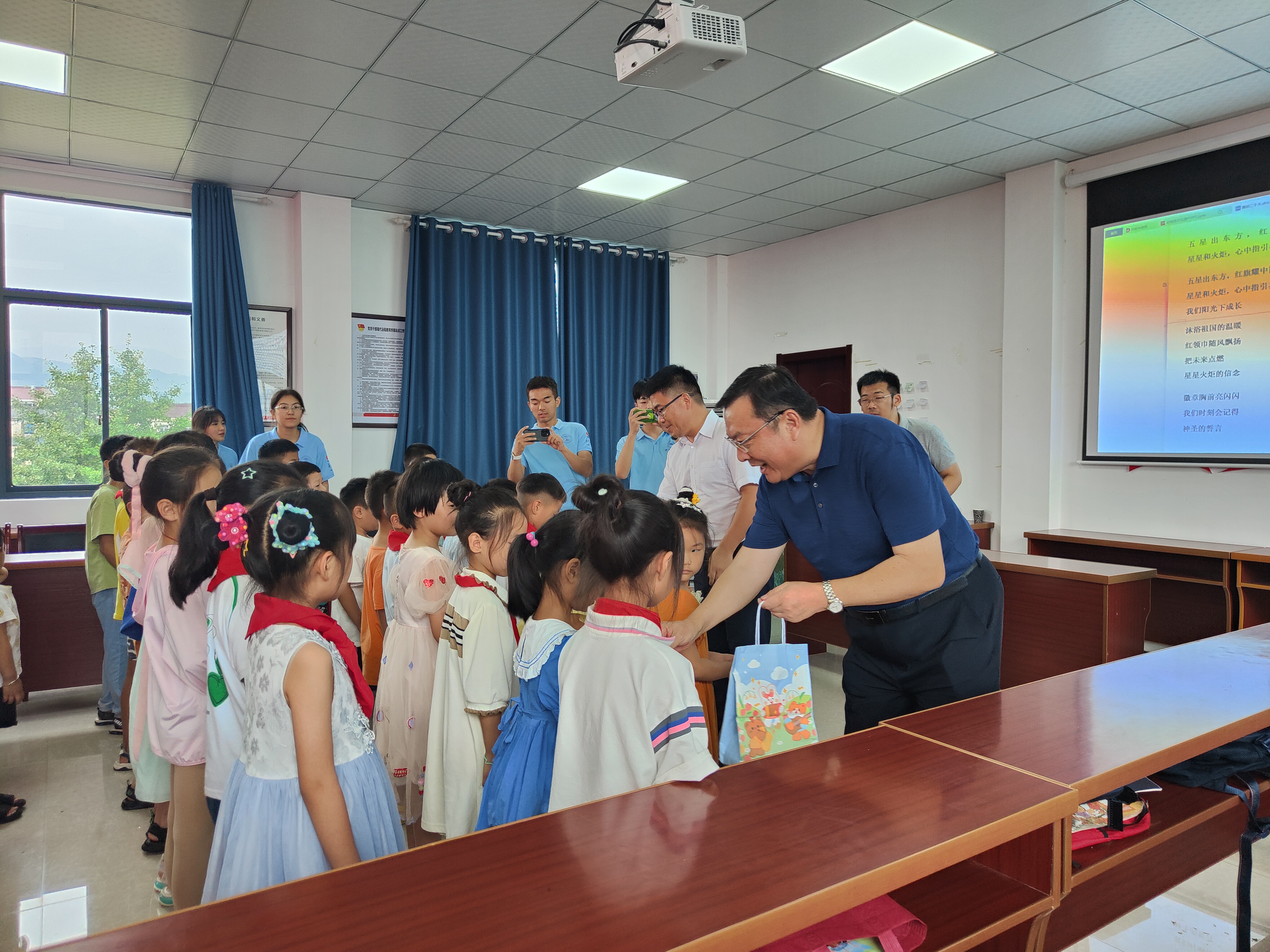 徐成钢先后走访了2138CC太阳集团在青阳县杨田镇、庙前镇和贵池区孝肃社区等地开办的“行知学堂”,了解实践活动开展情况,为“小学员”们赠送了学习用品,并与“小学员”一起,现场聆听了“小先生”讲授的“学习党的二十大,争做新时代好少年”的思政课内容。调研中,徐成钢与“小先生”们亲切交谈,询问他们的实践活动开展情况和生活保障情况,充分肯定他们乐于奉献、躬身实践的志愿服务精神,希望“小先生”们认真学习贯彻习近平总书记关于青年工作的重要思想,秉持“爱满天下,知行合一”的校训精神,努力为城乡留守儿童营造积极向上、健康文明的学习环境,积极助力乡村振兴,让青春在奉献中焕发绚丽光彩。