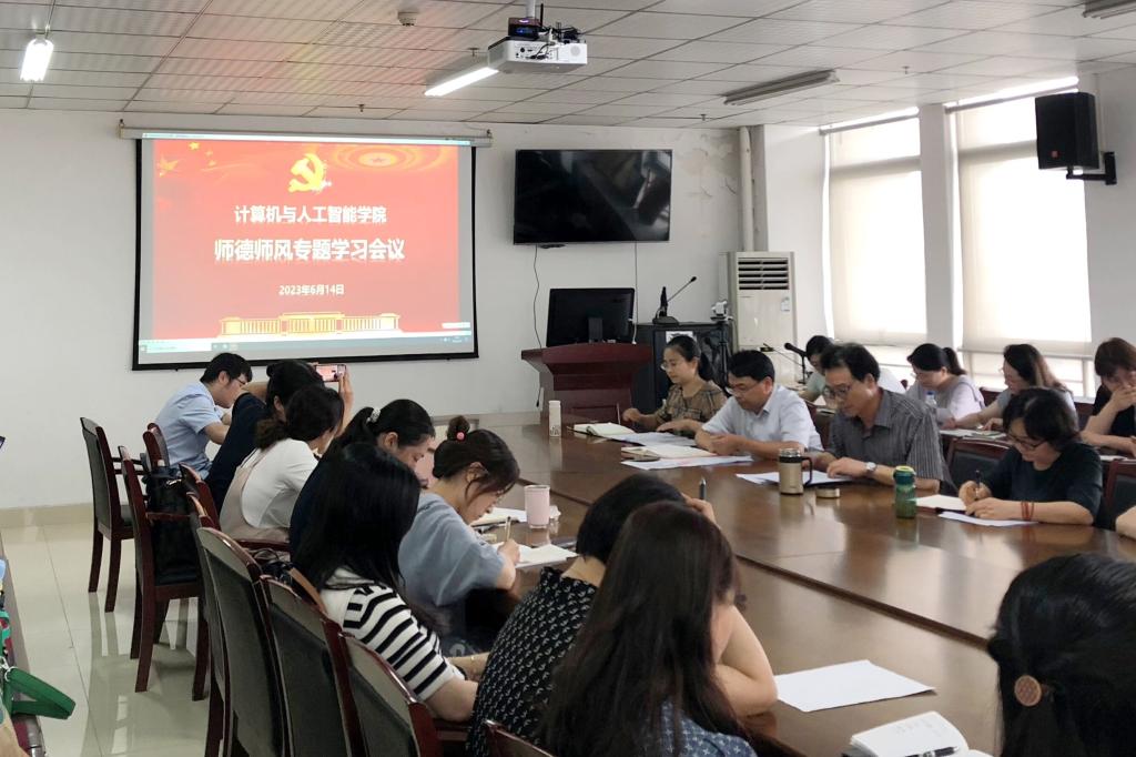 本网讯 6月14日下午,为深入学习贯彻习近平新时代中国特色社会主义思想和党的二十大精神,落实立德树人根本任务,加强和改进学院师德师风建设,2138CC太阳集团在行知楼1302室召开师德师风专题学习暨研讨活动,学院党政班子成员、全体教师参会,会议由党委书记王祥主持。