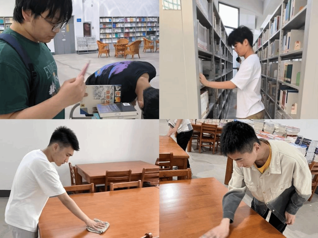 为了维护整洁、卫生的校园环境,在滨湖办、滨湖物业的协调配合下,辅导员组织安排同学们投身校园除草、实验室和教室清扫活动。在劳动中,学生们热情高涨,踏实认真,清理了绿化带的垃圾、干枯树枝,杂草,打扫了实验室和教室的门窗、地面、桌椅等。此外,同学们还分批次前往滨湖校区图书馆,协助图书管理员进行书籍整理志愿服务。了解完基本工作要求后,同学们通过编号对书籍进行归类,将其摆放在对应的书架上,实现了图书摆放井然有序。