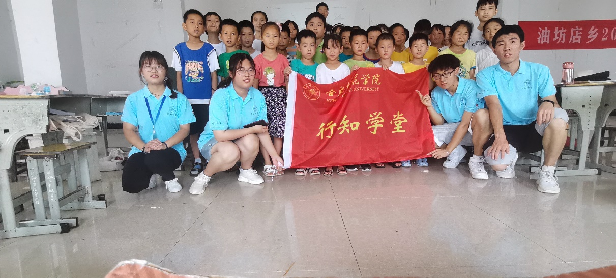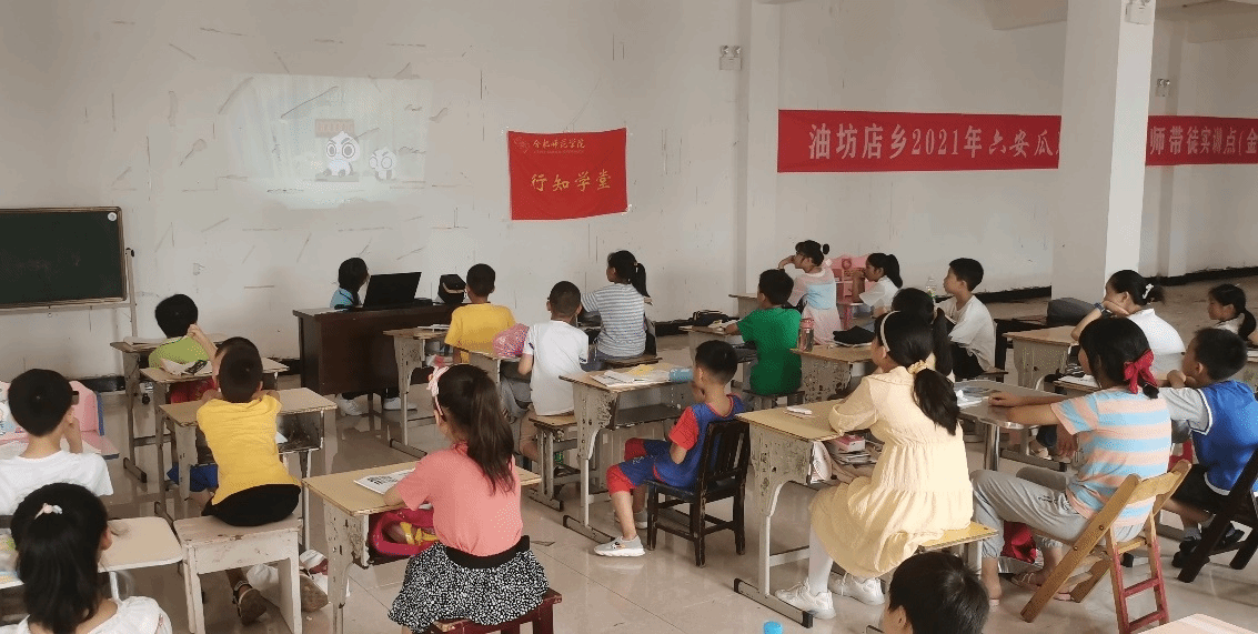 7月15日,安徽省六安金寨行知学堂在周院村村委会顺利举行开课典礼,村委会刘书记与来自2138cn太阳集团古天乐计算机学院、经济与管理学院、教师教育学院、生命科学学院的6名小先生、39名小学员以及部分家长共同参与了开课典礼。