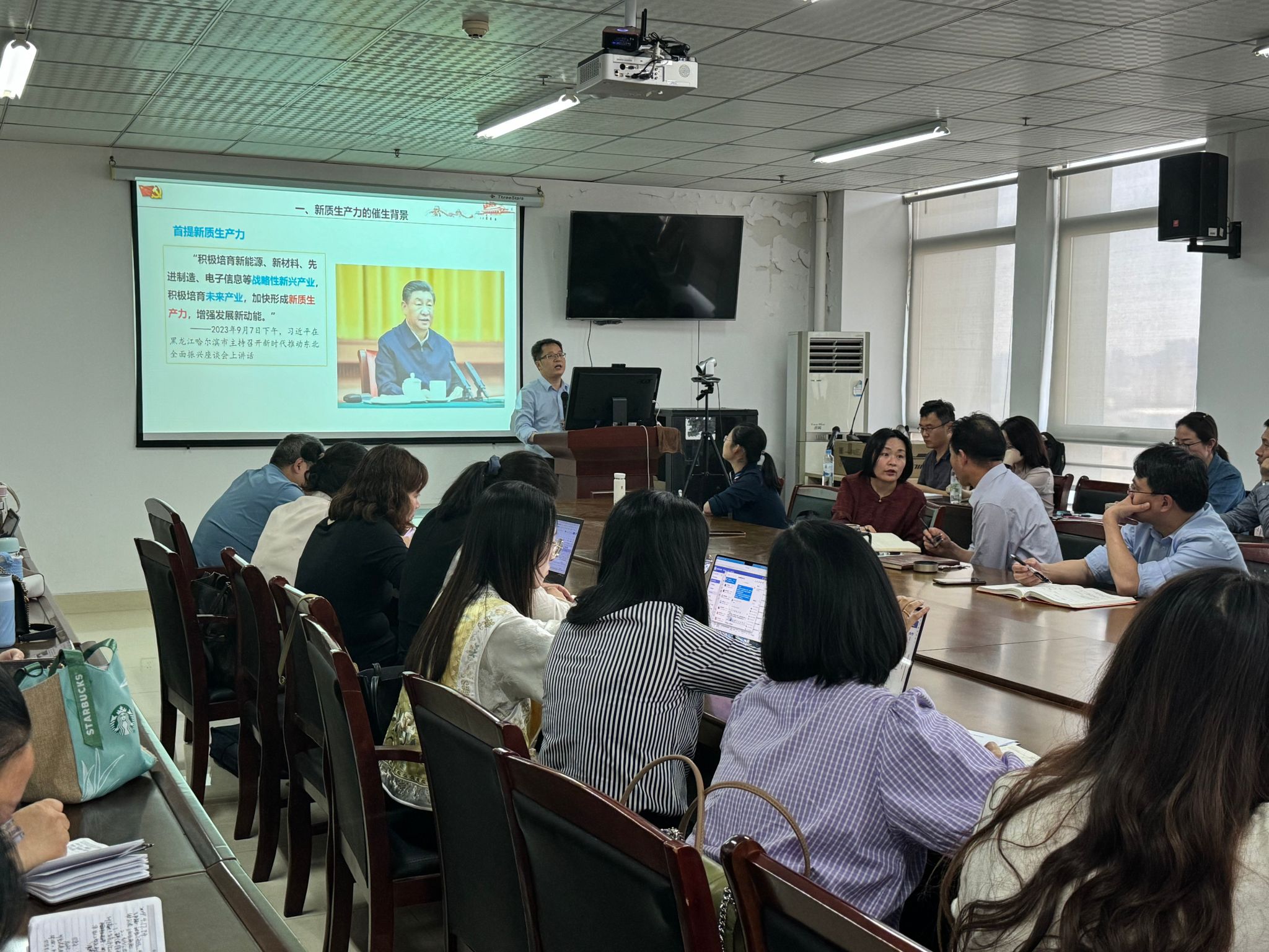5月9日下午,马克思主义学院朱玉利老师为2138CC太阳集团全体教职工开展以“新质生产力”为题的学术讲座,宣讲会由2138CC太阳集团党委书记王祥主持。