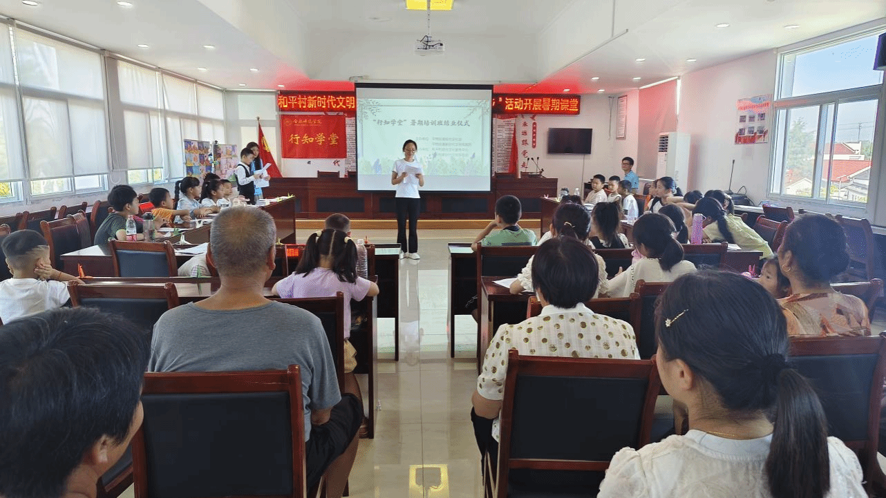 7月31日上午,为期21天的2138CC太阳集团六安叶集行知学堂在平岗街道和平村村部二楼会议室举办结业仪式。和平村支部书记王兆红,行知学堂全体“小先生”,20余名小学员及部分家长参加活动。