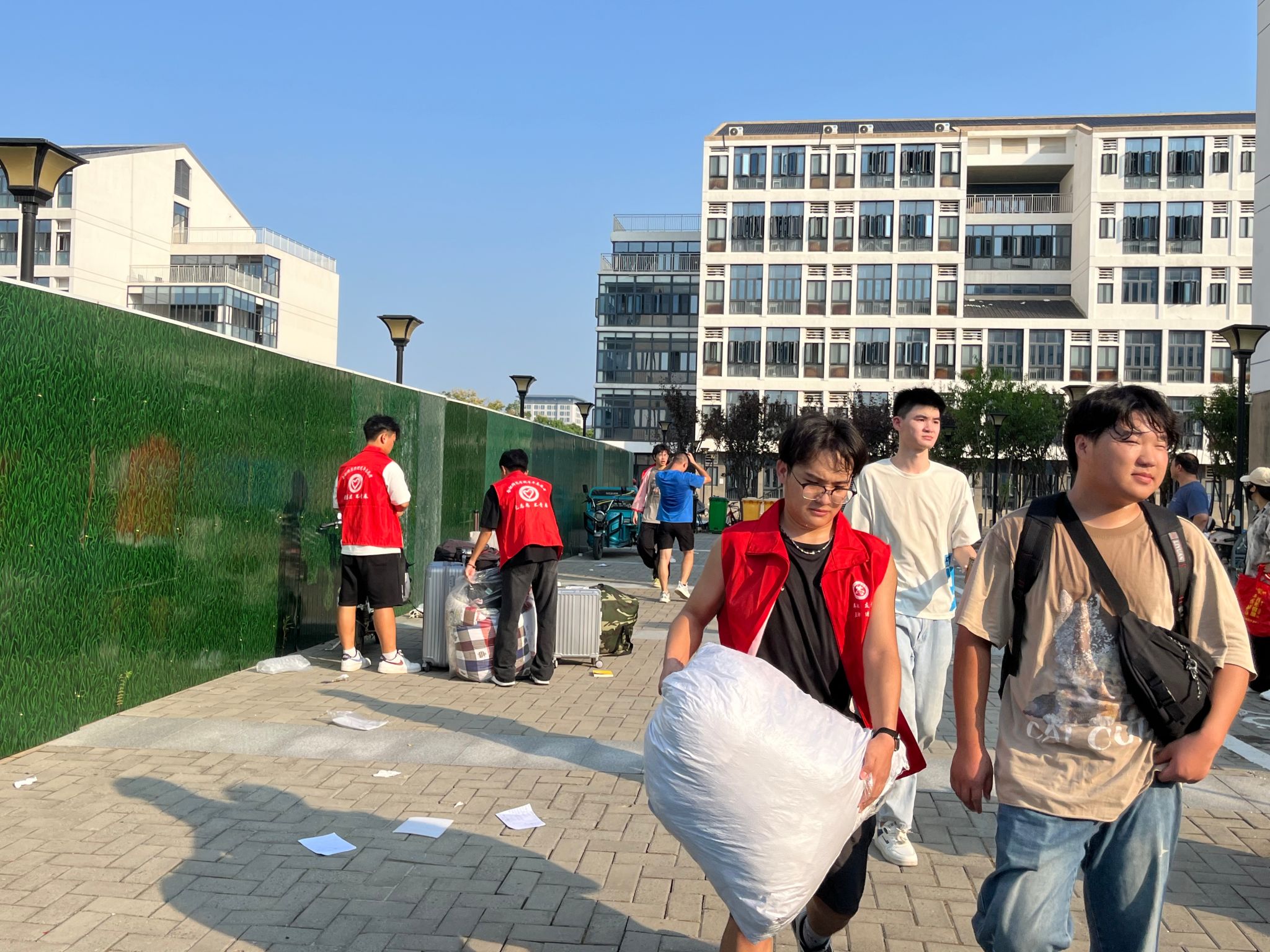 为保证搬迁任务的顺利进行,确保学生们的行李应搬尽搬、不留遗漏,在退离原宿舍时,同学们自发清理相关杂物,避免遗留垃圾等。同时,学院组织志愿者积极帮助同学们搬运行李,组织同学们有序卸载行李物品并协调解决临时出现的各类问题。