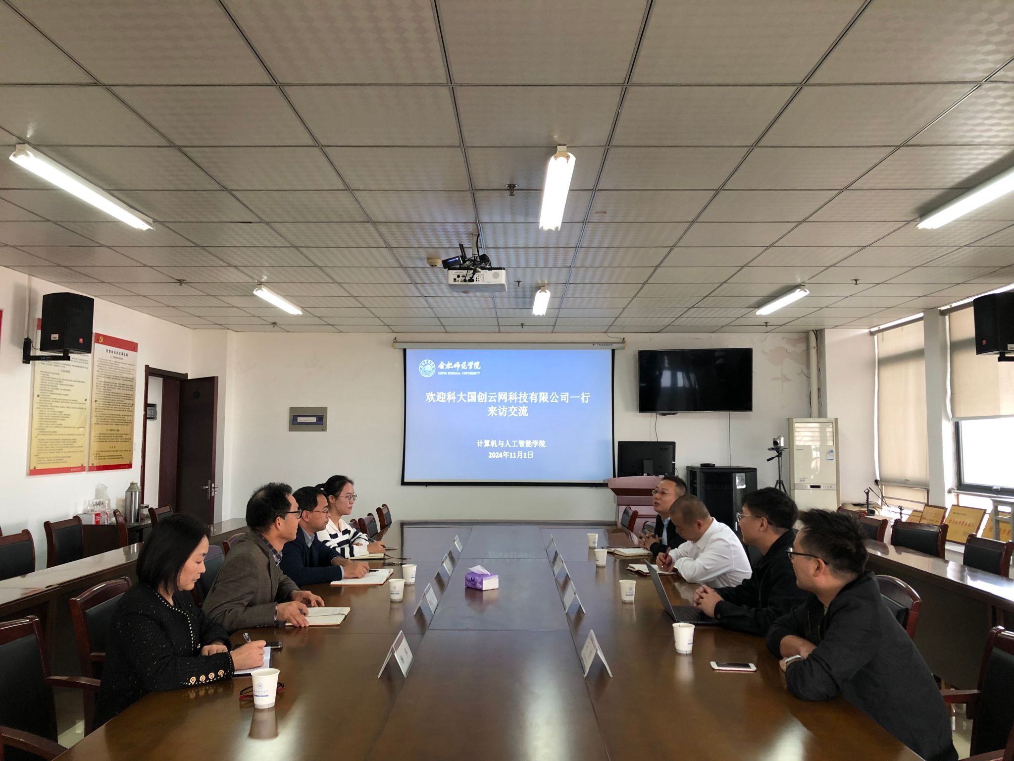 会后,“访企拓岗促就业”校企交流座谈会在行知楼1302会议室举行。学院党政班子成员与科大国创就实习就业、企业见习、产教融合、人才培养等方面进行了深入探讨,希望进一步深化校企合作领域,共同搭建育人平台。