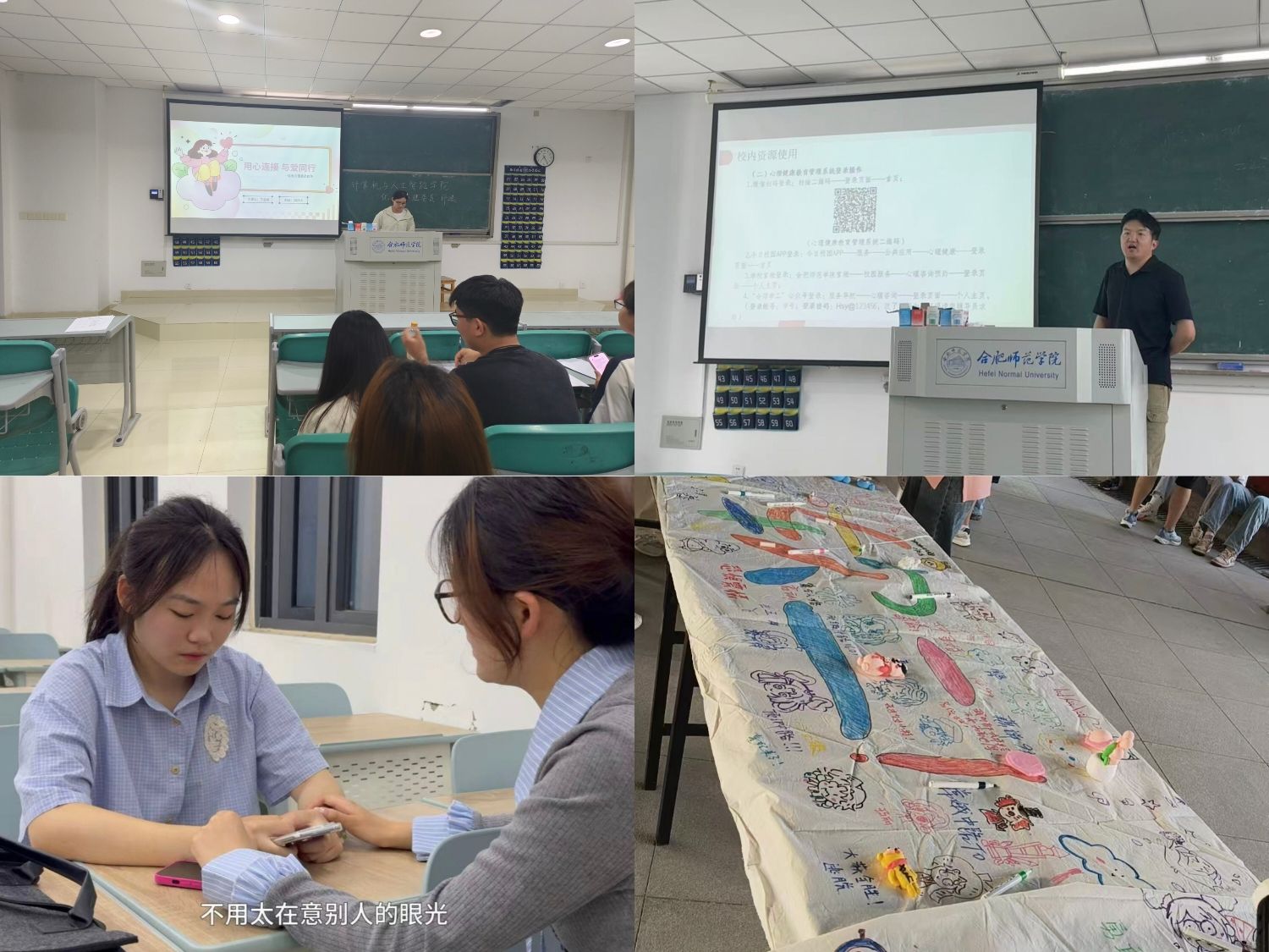 各班级积极响应学院号召,围绕心理健康节开展了形式多样的班级活动。如开展心理健康主题班会,引导同学们关注自身心理健康;开展多人多足、数字抱团等团队运动,增强了班级凝聚力和团队协作能力;开展粘土创作、肖像版画等活动,引导同学们积极表达情绪。此类主题活动,不仅丰富了同学们的课余生活,还让同学们在集体活动中感受到了温暖及支持,共筑心灵家园。