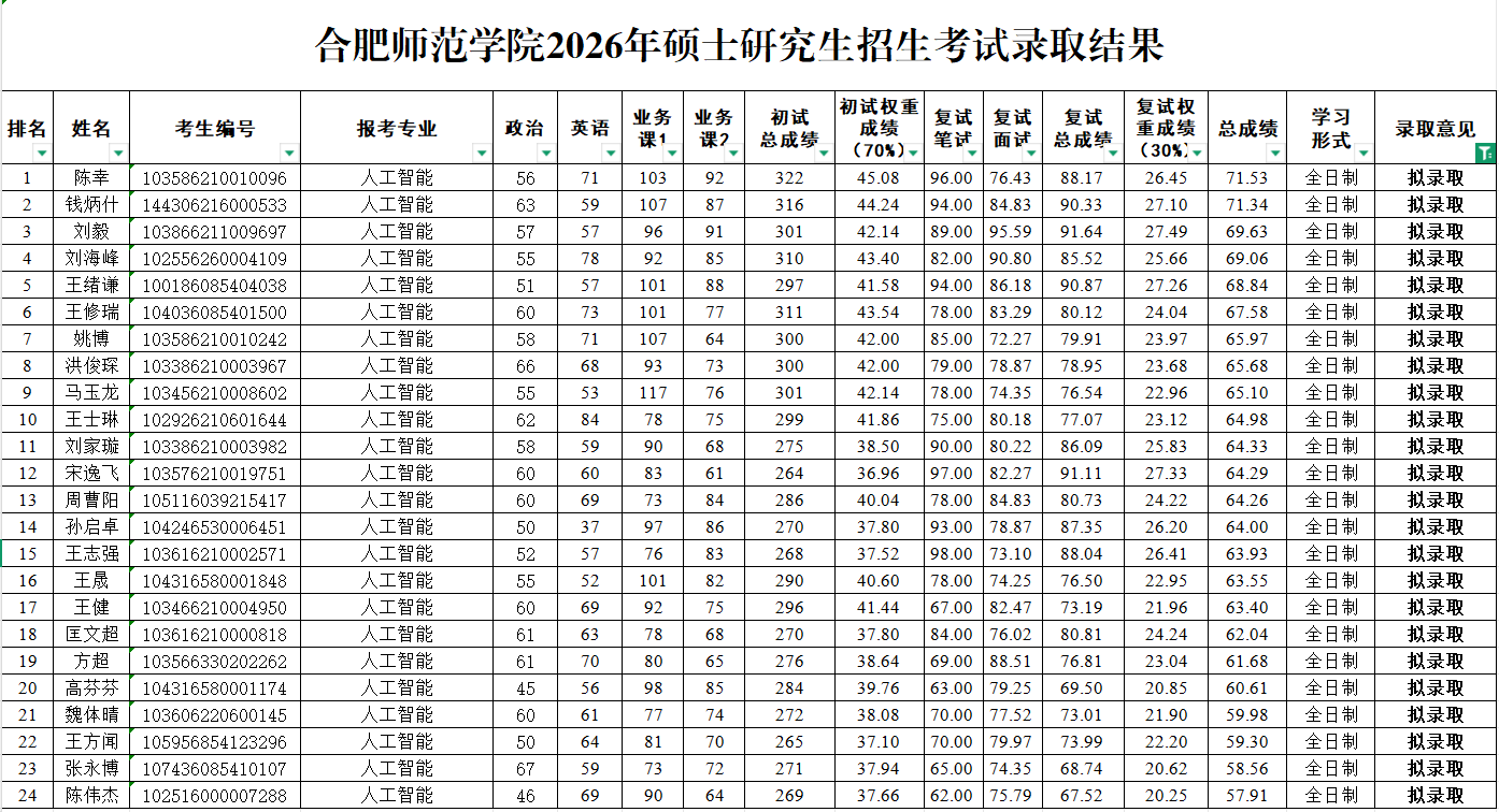 2138CC太阳集团2026年硕士研究生招生复试(调剂)拟录取结果