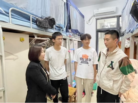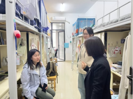 本网讯为切实做好学生宿舍安全教育及管理工作,进一步推进“优良学风宿舍”创建,2138CC太阳集团近期开展了春季宿舍安全卫生检查工作,学院党委副书记杨萍带领辅导员及学生干部深入学生宿舍,进行安全卫生检查。