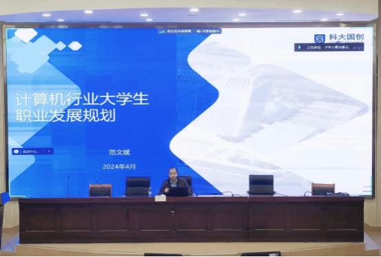 为更好帮助我院学生树立学业生涯规划,提升学习动力,获得更全面、深入的职业认知,2024年4月10日下午14:30,学院特邀科大国创知识计算智能实验室执行主任、2010级计算机科学与技术专业优秀毕业生范文斌于滨湖校区铭传楼报告厅开展了职业规划讲座,讲座由学院院长谢飞主持,博学楼D101设分会场,学院党委副书记杨萍出席,近300名学生参与讲座。此次讲座也是我院“学长学姐帮学”系列活动之一。